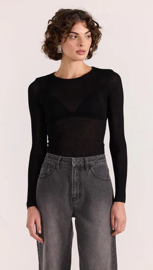 The Asta Sheer Knit Top by Staple the Label is a fun take on a basic knit top, with it's slightly sheer element. Featuring a fitted silhouette, and stretchy knit material. Pair yours with the matching Asta Sheer Knit Midi Skirt, or the Sutton Crop Jeans to complete the look.