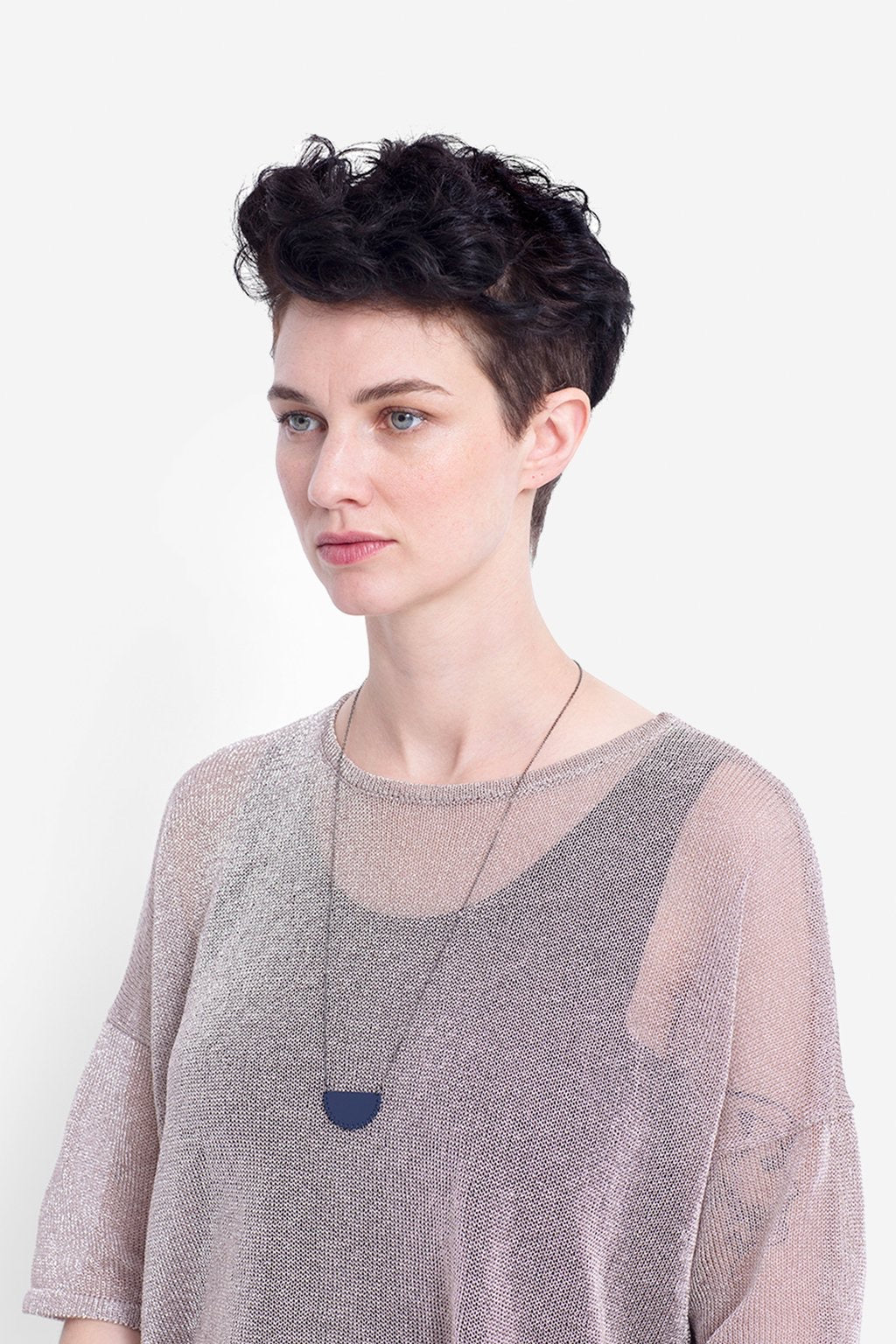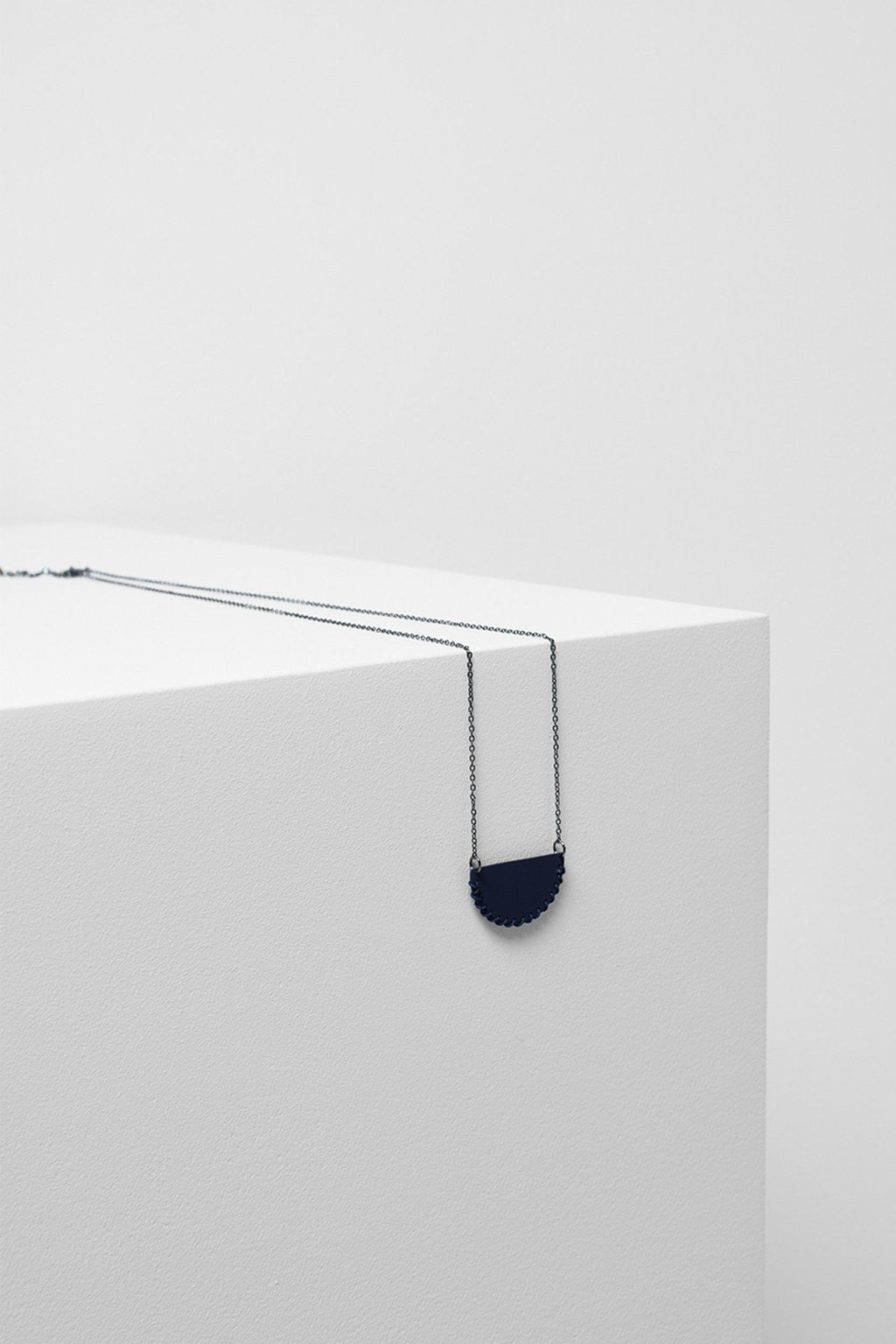Simple fine necklace with semi circle feature pendant.