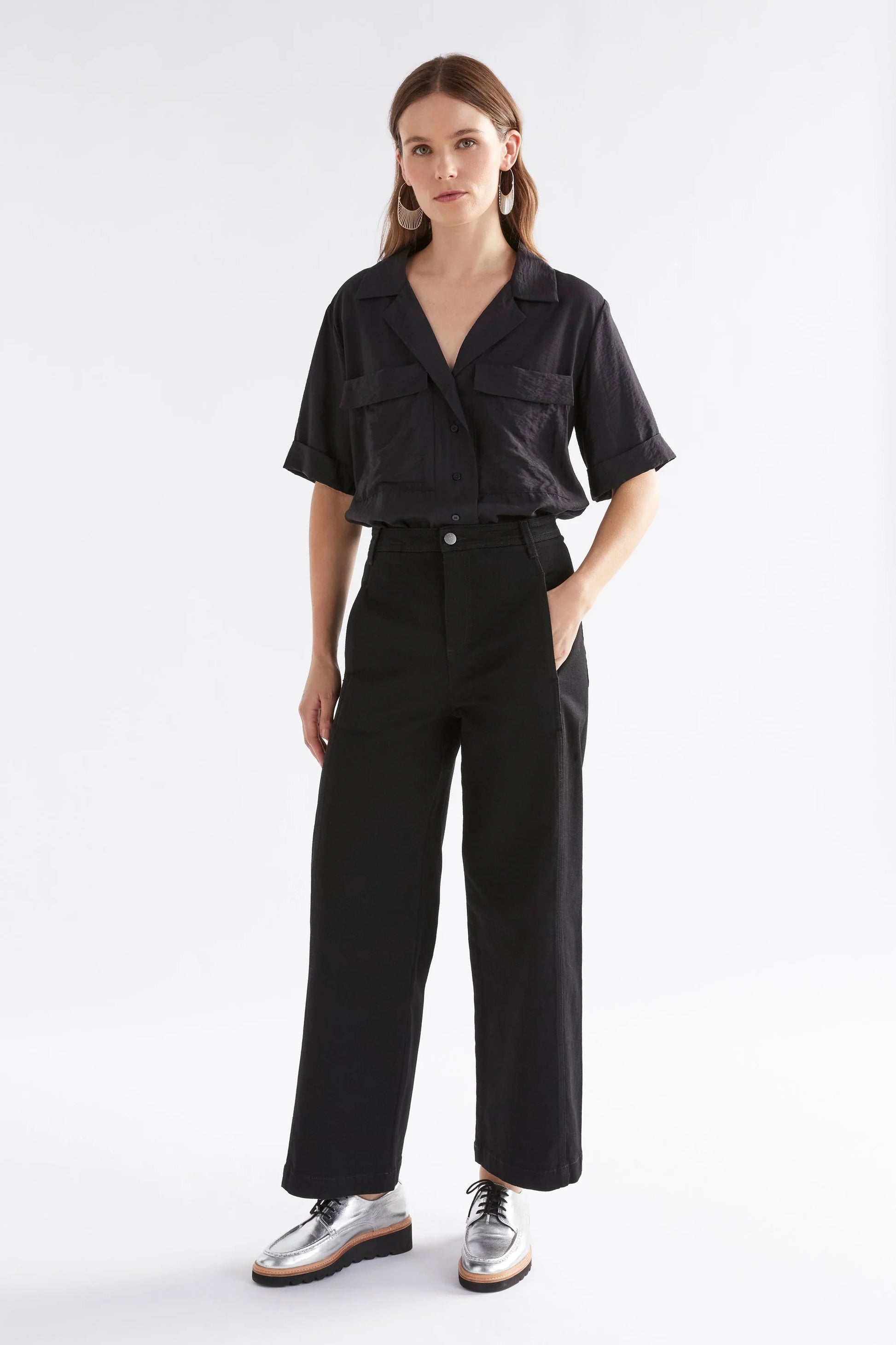Effortless and versatile, the Eine Shirt is a refined take on relaxed tailoring. Crafted from a soft, textured viscose blend, it drapes beautifully while remaining lightweight and breathable. Patch pockets with flap closures add a subtle utility touch, while the exaggerated placket and natural Corozo buttons enhance its understated appeal. Style it with a sharp blazer for meetings, then roll up the sleeves and pair it with relaxed denim for an off-duty look.