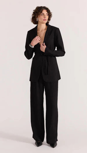 The Emory Pants by Staple the Label are a timeless wardrobe piece. Featuring a textured fabrication, and jet black hue. Pair yours with the matching Emory Halter Top, or the Emory Tie-Waist Blazer to complete the look.