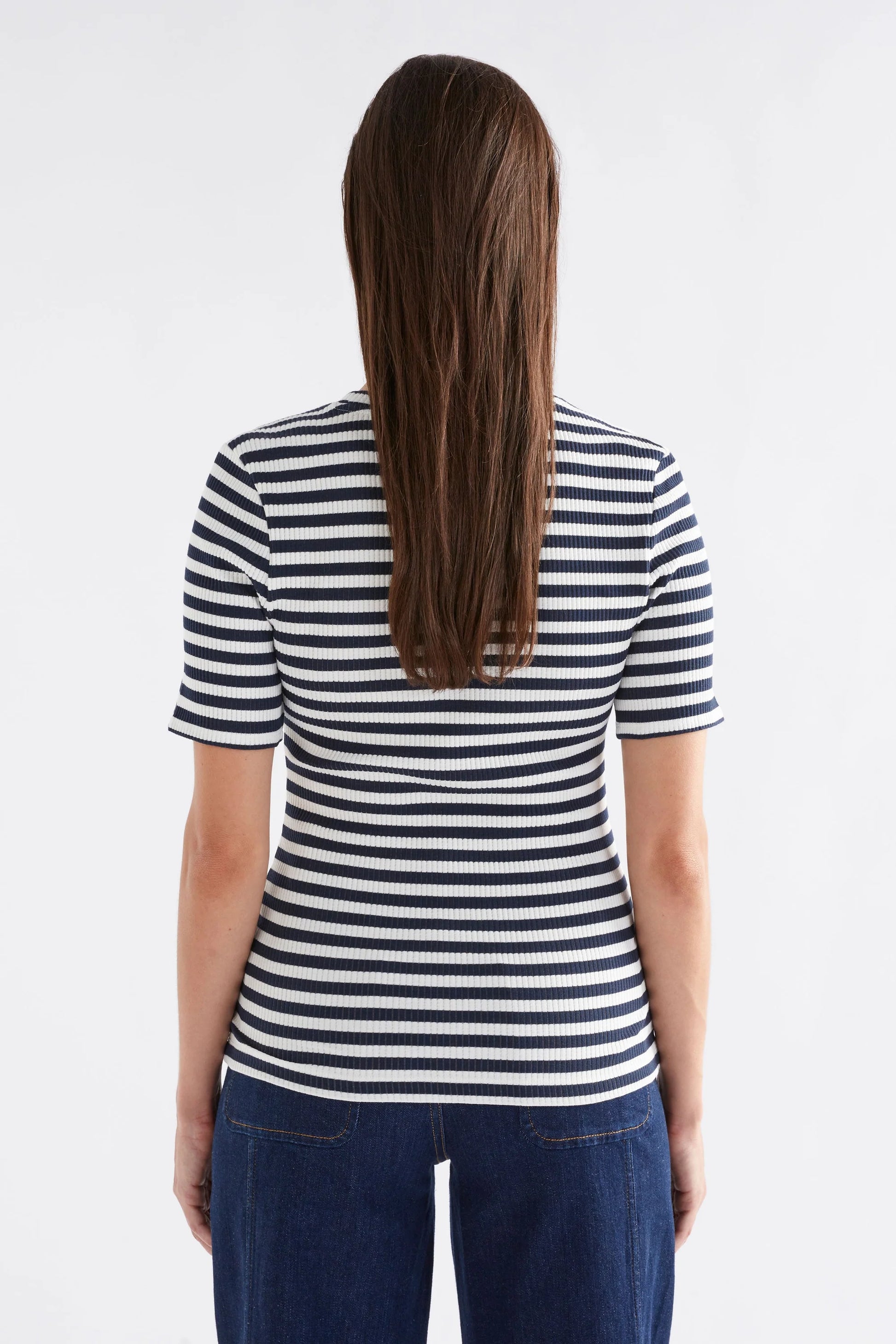An elevated wardrobe building block. Made from a blend of premium organic cotton, and elastane, the Kullan Ribbed Tshirt offers both great stretch and a dense, high-quality finish. The contrast bright olive internal back neck bind adds a pop of unexpected colour. A true layering hero, this piece is designed for bulk-free comfort. Wear it as a smooth base layer to lift any outfit or tuck it neatly into the waistband of jeans or tailored trousers for a sleek, clean finish.