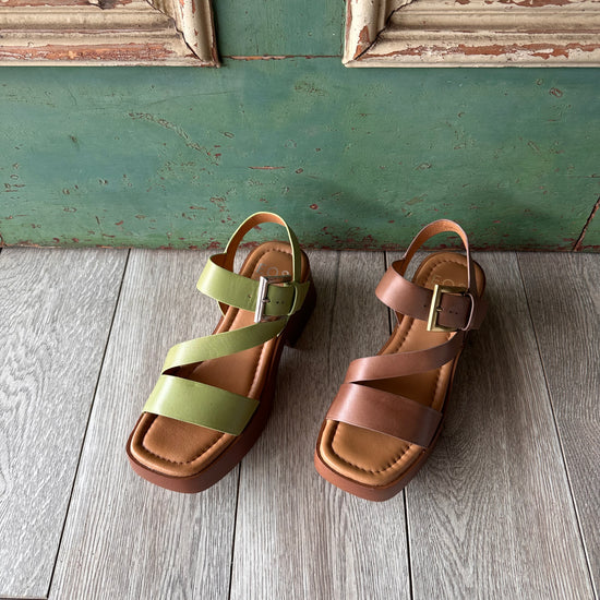 Elevate your everyday style with the Parisa Wedge in Pecan and Apple. Crafted in rich toned leather, this sandal features two sleek front straps — one with a gold buckle for adjustable comfort and a secure fit. The thick wedge sole offers a flattering lift while maintaining stability and ease for all-day wear.