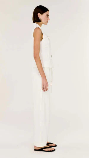 The Portia White Cotton Relaxed Wide-Leg Pant combines comfort with refined structure. Crafted from breathable cotton drill, this style features a relaxed wide-leg silhouette that falls fluidly from the waist. Designed with a comfortable pull-on waistband, it offers ease without compromising on polish. Perfect for elevated everyday wear, these pants pair seamlessly with the matching Portia Vest for a timeless, modern look.